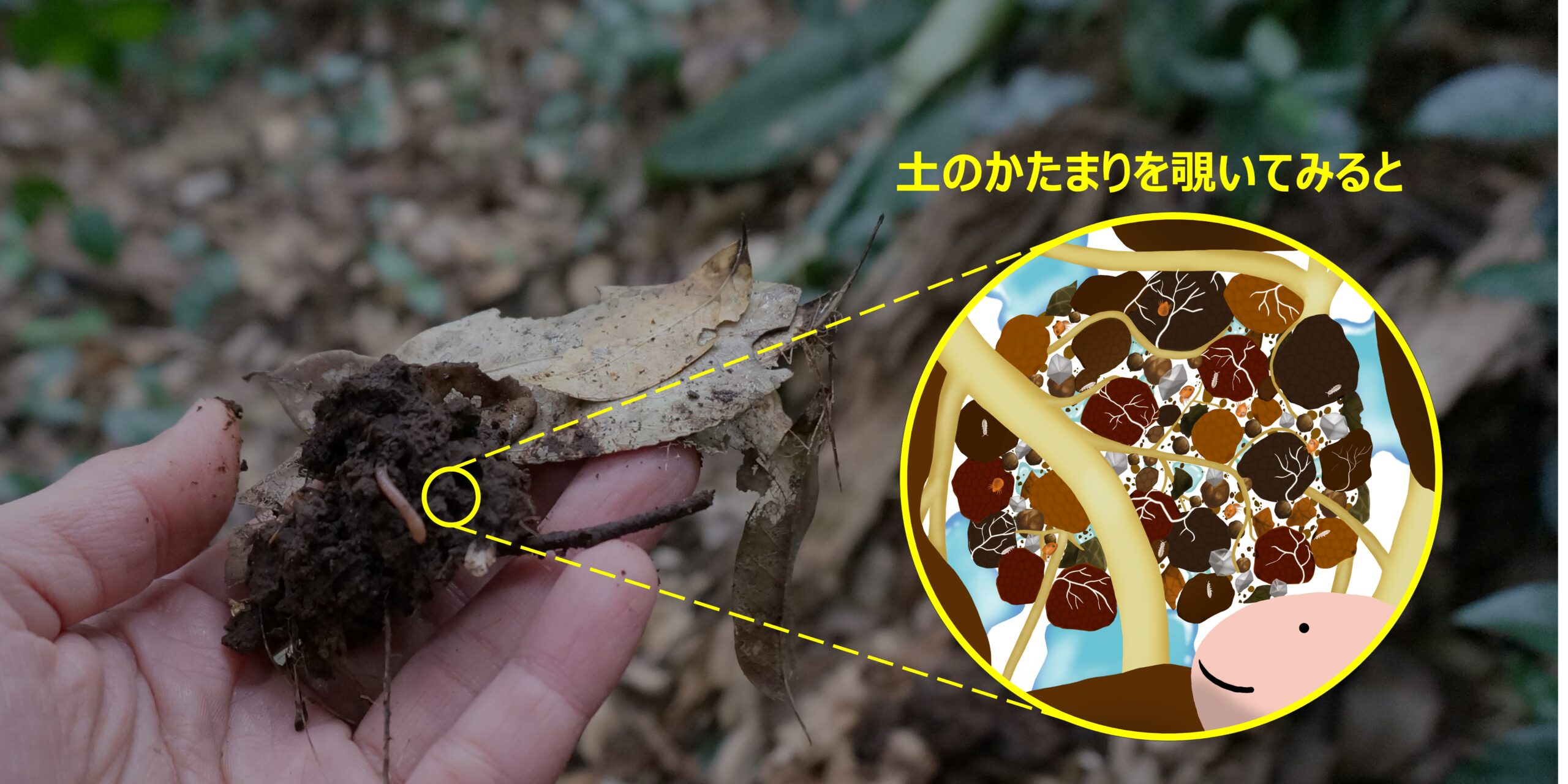 “環境”と聞いて想像する世界―森、畑、川、大気―は、足元の世界、つまり土壌と密接に繋がっています。土壌とは、鉱物・有機物・微生物の混合物で、1cmの厚さが約100年かけて生成されます。土壌は、炭素や養分元素の循環の要であり、環境問題解決の鍵としても、近年注目されています。