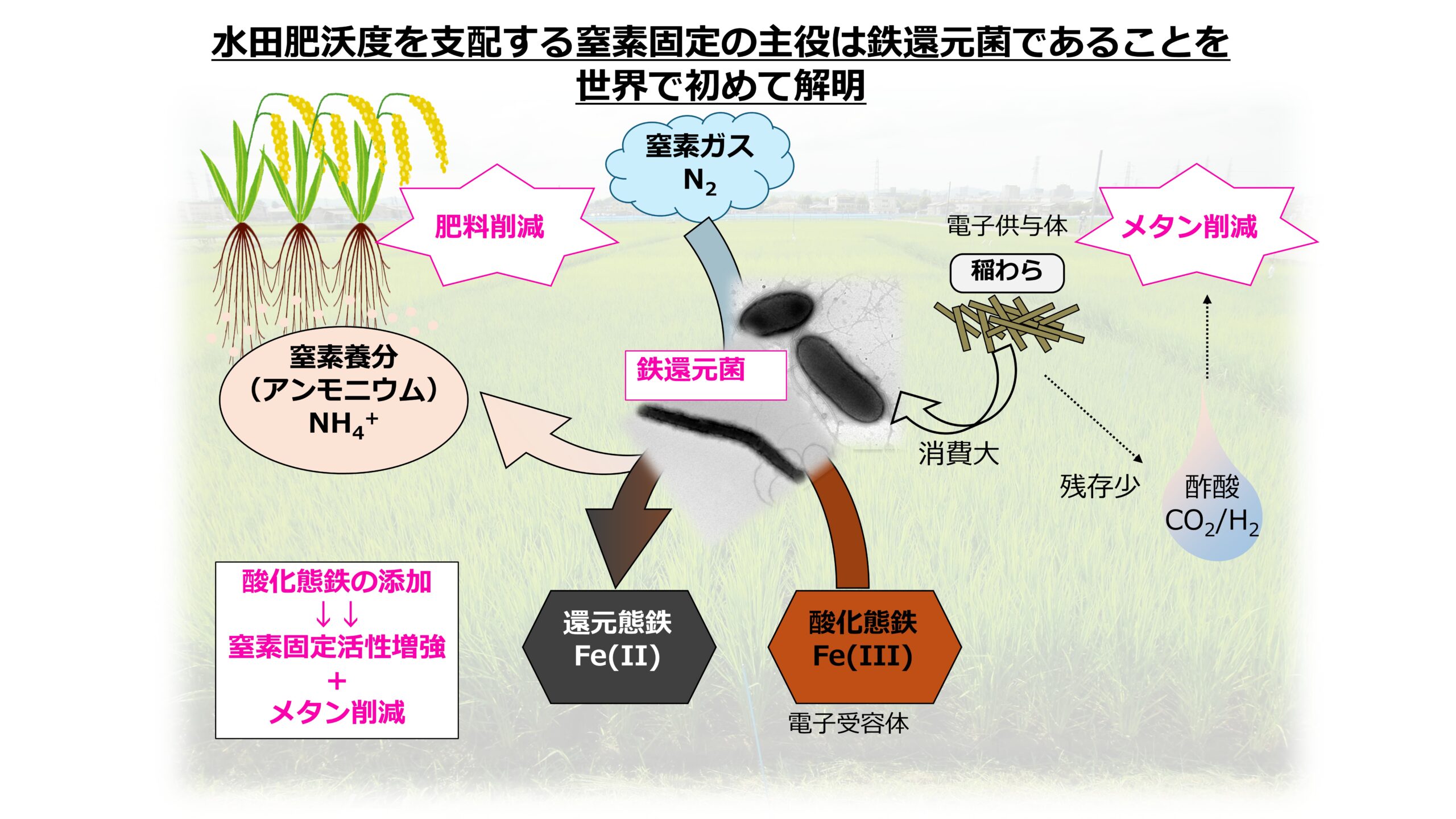 - 研究テーマ3:水田土壌の窒素供給力を支える鉄還元菌窒素固定の学術的基盤解明と低窒素農業への応用